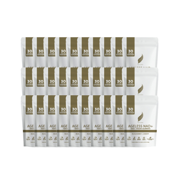 Ageless NAD+ was formulated based on emerging longevity research. Ageless NAD+ supports the pathways that help replenish NAD+ and optimize cellular performance.Formulated with NMN, the direct precursor to NAD+, alongside emergent antioxidants and sirtuin activators, this advanced blend is designed to support the enzymes responsible for mitochondrial renewal and cellular defense. It takes a multi-targeted approach to protecting and sustaining biological function at the cellular level.